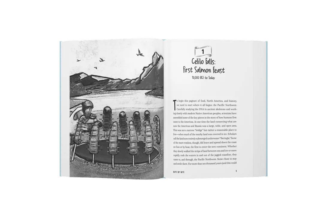 Explore the fascinating history of America as told through the lens of food in this illustrated nonfiction middle grade book that lays out the diverse cultures that have combined to create the rich and delicious tapestry of the American country and cuisine. As American as apple pie. It’s a familiar saying, yet gumbo and chop suey are also American! What we eat tells us who we are: where we’re from, how we move from place to place, and how we express our cultures and living traditions.