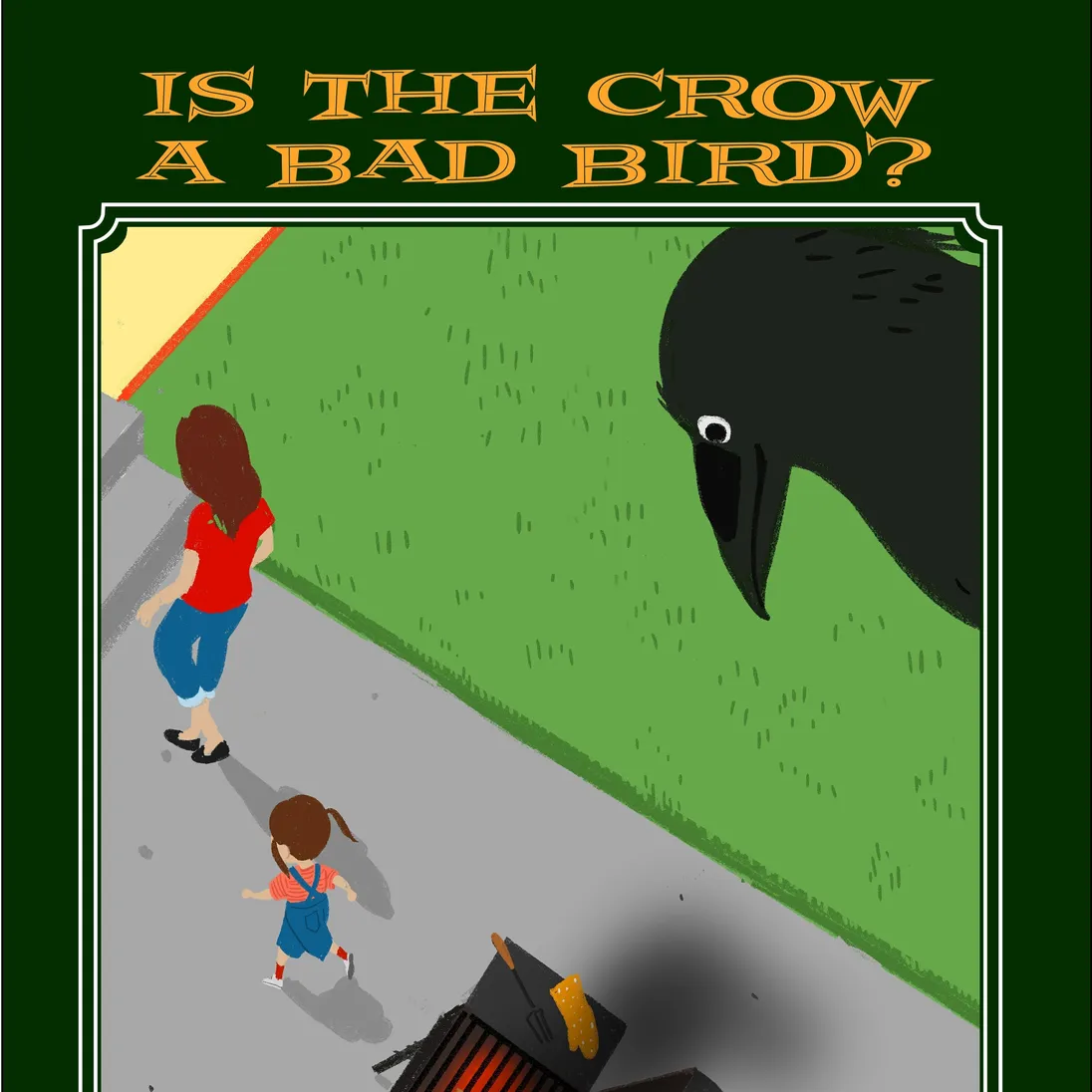 Is the Crow a Bad Bird?, is a children's book depicting Rosemary and the Crow fighting over the ribs she is cooking on a hot grill. The Crow is shrewd and conniving, outwitting Rosemary at her own intelligence; he peed and pooped on the scarecrow, and laughed at her. The Crow is good at what he does best, peep and peck.